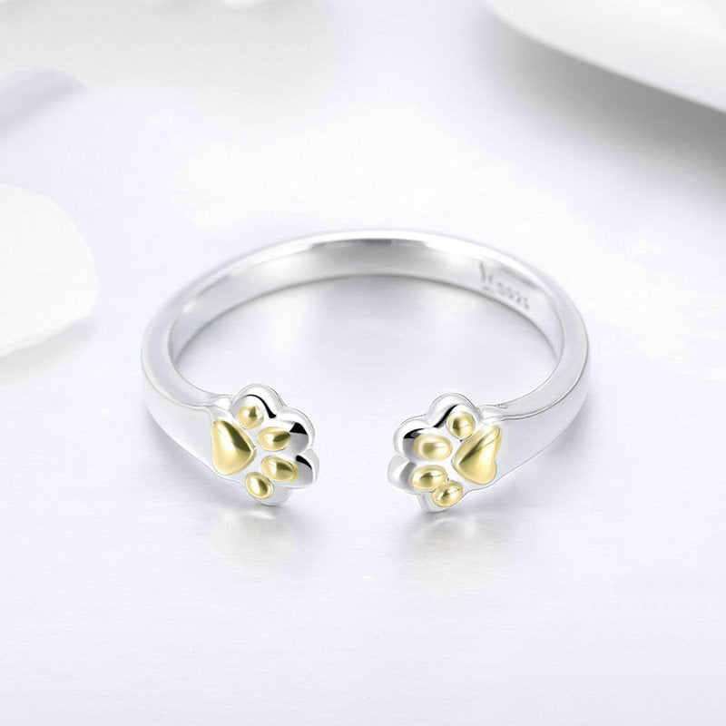 Bague Pattes de Chat en argent 925 plaqué or blanc ajustable