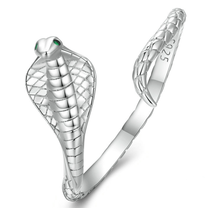 Bague Serpent Cobra Royal Argent Sterling 925 plaqué or blanc – ajustable