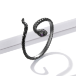 Bague Serpent Noir en argent 925 plaqué or noir ajustable avec zircons violet