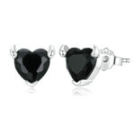 Boucles d’Oreilles Coeurs Noirs en argent 925 plaqué or blanc avec zircons noirs