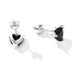 Boucles d’Oreilles Coeurs Noirs, en argent 925 plaqué or blanc avec zircons noirs.