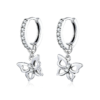 Boucles d’Oreilles Créoles Pendentif Papillons en argent 925 plaqué or blanc avec zircons blancs