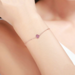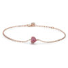 Bracelet Coeur Rose, en argent 925 plaqué or rose ajustable avec zircons roses.