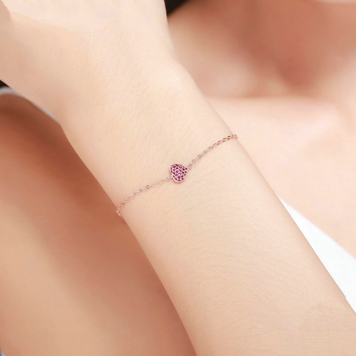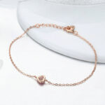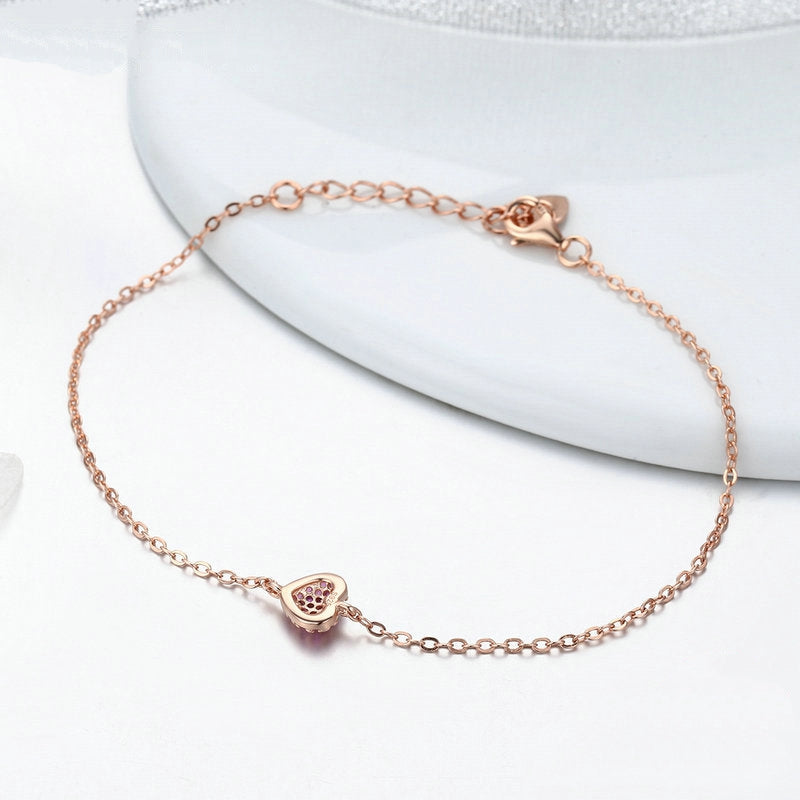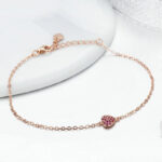 Bracelet Coeur Rose en argent 925 plaqué or rose ajustable avec zircons roses