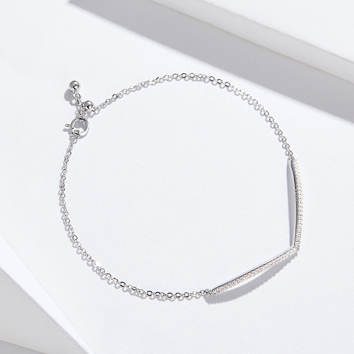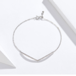 Bracelet en V, en argent 925 plaqué or blanc ajustable avec zircons blancs.