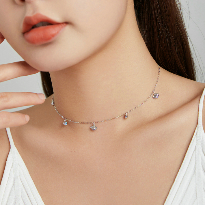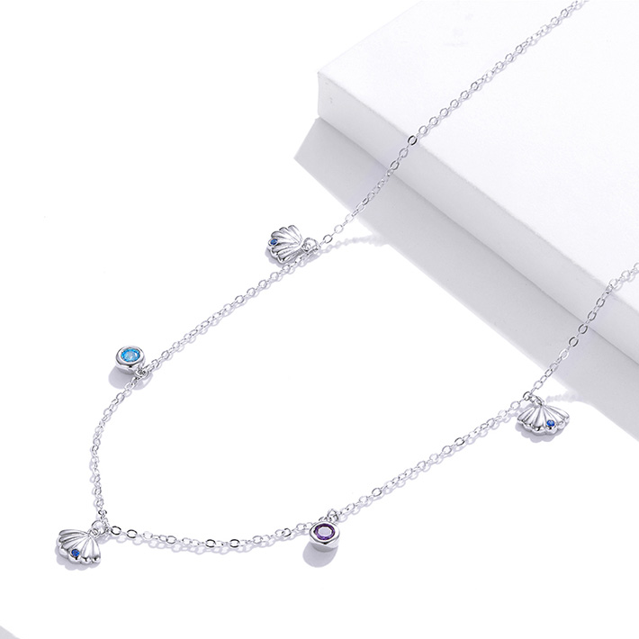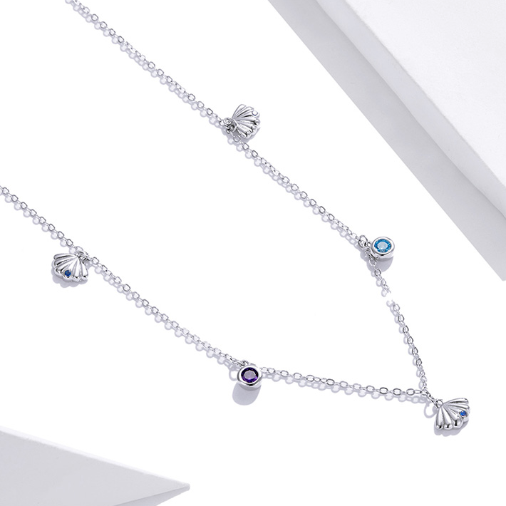 Collier Coquillages en argent 925 plaqué or blanc ajustable avec zircons colorés