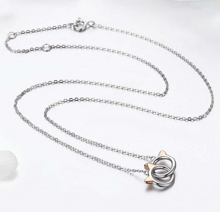 Collier Deux Chats, en argent 925 plaqué or blanc et or rose ajustable.