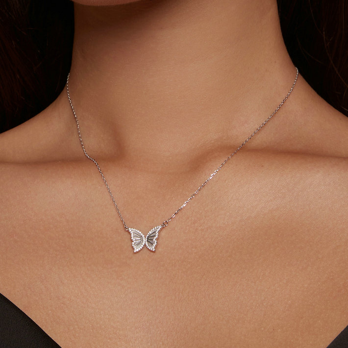 Collier Papillon en argent 925 plaqué or blanc ajustable avec zircons blancs